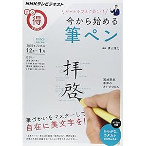 NHKまる得マガジンにて「今から始める筆ペン」が放送されます ~ 2015年11月30日 月から、NHKまる得マガジンで「ルールを覚えて美しく!今から始める筆ペン」がスタートします。講師は、独自の美文字メソッドを提唱し、書写・書道教育の研究者でもある青山浩之先生です。