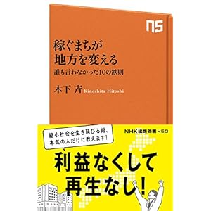 木下斉『稼ぐまちが地方を変える』(NHK出版新書) 7点 山下 ~ 高校生の頃から商店街の活性化プロジェクトに取り組み、その後数々の体験や挫折を経て、現在、「まちづくり」について活発に発言・行動している著者による、「まちづくり」の指南書。 副題は「誰も言わなかった10の鉄則